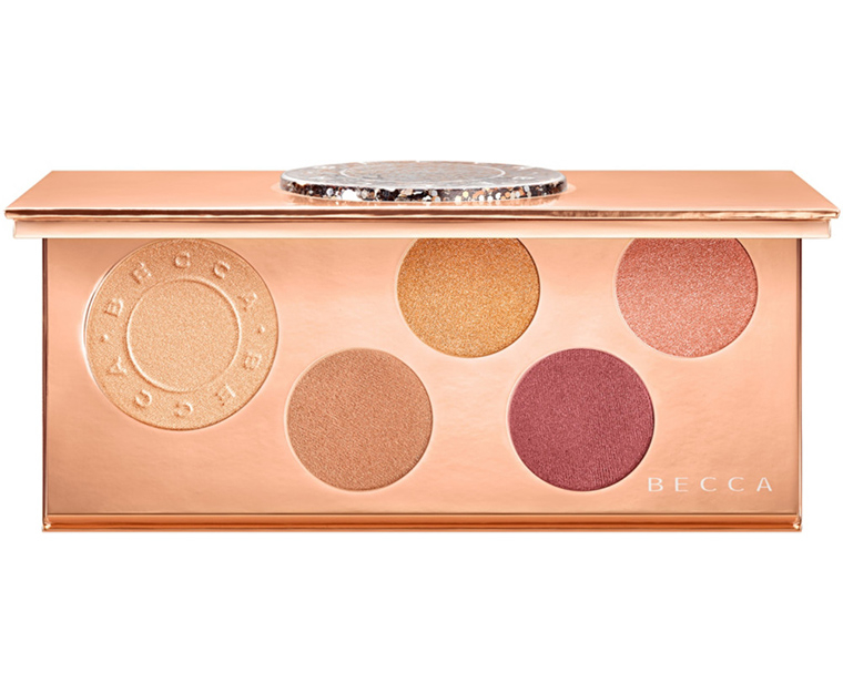 BECCA Pop Goes the Glow Champagne Pop Face & Eye Palette includes bestselling Shimmering Skin Perfector Pressed Highlighter in C Pop and 2 brand new, exclusive shimmering shades in Pink Crème & Truffle that can be used as a blush, highlighter or eyeshadow. Plus 2 brand-new satin finish shades in Berry & Caramel that can be used on the cheeks and eyes.