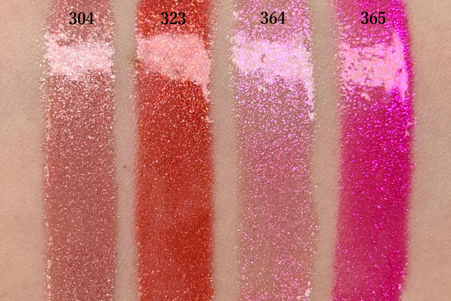 Last but not least we have the four glitter Guerlain Kiss Kiss Liquid Lipstick shades. Is not hard to guess these are probably my favorites because of the intense shine and pop of colors. OK you got me….there’s that No.365 fuchsia pink in there that looks so tempting. 🙂