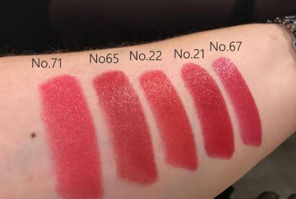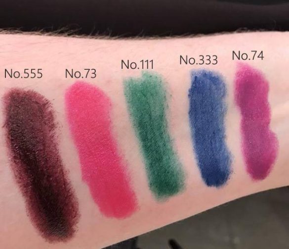 So, there will be 30 lipstick shades (£24.50) coming our way. Eight of them will be limited edition, like the blue, green or yellow one. The formula has been improved so it’s a bit different than the old Rouge G formula.
