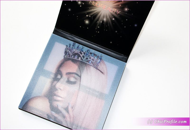 Huda Beauty Winter Solstice Highlighter Palette is a new and limited edition one, part of Huda Beauty Winter Solstice Holiday 2017 Collection. As part of the same collection is also Huda Beauty Winter Solstice Mini Lip Strobe Set (review). This new 3D highlighter palette features one melted cream highlighter and three powder highlighters. The cardboard packaging is sleek and slim. It doesn’t come with a mirror inside but you get a plastic foil for extra protection.