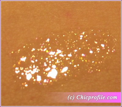 I tested this lip gloss only on my hand and it has an incredible shine, is non sticky and contains lots of golden, pink and silver shimmery particles. I regret not applying this on top of the lipstick to see its effect.