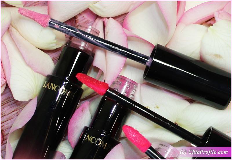 The formula has a sweet scent which is not discernible on the lips. The packaging is luxurious and elegant, embossed on the top with the golden rose Lancome signature. I just love how chic and elegant the tube looks, with a gradient shade starting from a luscious black going down in the shade of the each liquid lipstick. The doe-footed applicator has a pointed tip that gives a precise application even without using a lip liner. 🙂