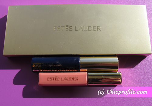 I got a Pure Color Eyeshadow Palette, a mini size Pure Color Gloss and Sumptuous Bold Volume Lifting Mascara all packed in a beautiful navy color bag. The eyeshadow palette contains 7 colors in different textures from satin and shimmery to matte. I never tried Estee Lauder eyeshadows before so I can’t wait to test this palette.