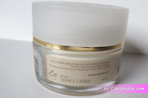 The cream comes in a semi transparent 50 ml jar with a sterile spatula pad recommend to be used each time for the preservation of this product. The jar is sealed with Organique original stamp so you can make sure it wasn’t opened before.