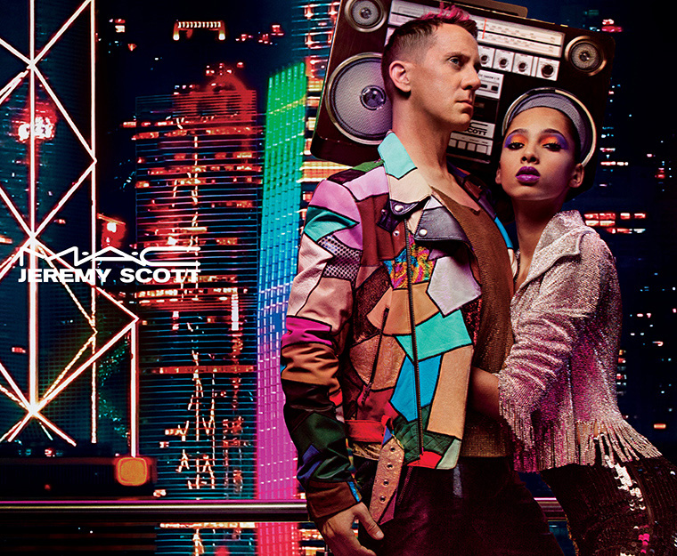 Hailed as one of fashion’s last true rebels, Jeremy Scott creates decadent high fashion from American cultural obsessions. With a fanatical following of pop music’s biggest icons, the irreverent designer provokes and pushes into fashion’s outer limits. Scott’s collection for M·A·C introduces manic colour for eyes, lips and cheeks specially packaged in cheeky tribute to the days of mixtapes, boomboxes, new music and unhinged creative expression taking root on city streets.