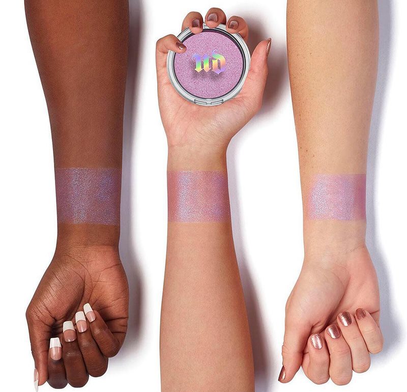 Take your glow into the next dimension with this lightweight, insanely pretty powder that creates a luminous, holographic sheen. Use a little for a more subtle glow, or build and layer to achieve a high-watt highlight. UD infused this velvety formula with lustrous pearl pigments. There’s never any white cast—just a pretty, luminous glow. And because this formula isn’t pressed, the feel is ultra-lightweight.